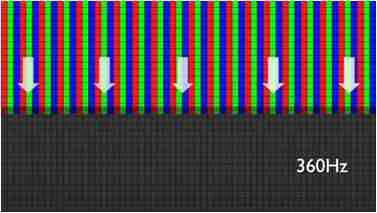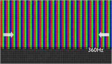 传统液晶驱动是从左到右单向进行,,,,在画面更新速度愈来越愈快的情况下,,,,位于驱动线路末端的右下角区域,,画素的闸极来不及在短时间内获得足够电压,,无法显示出正确的颜色资讯。。。 |